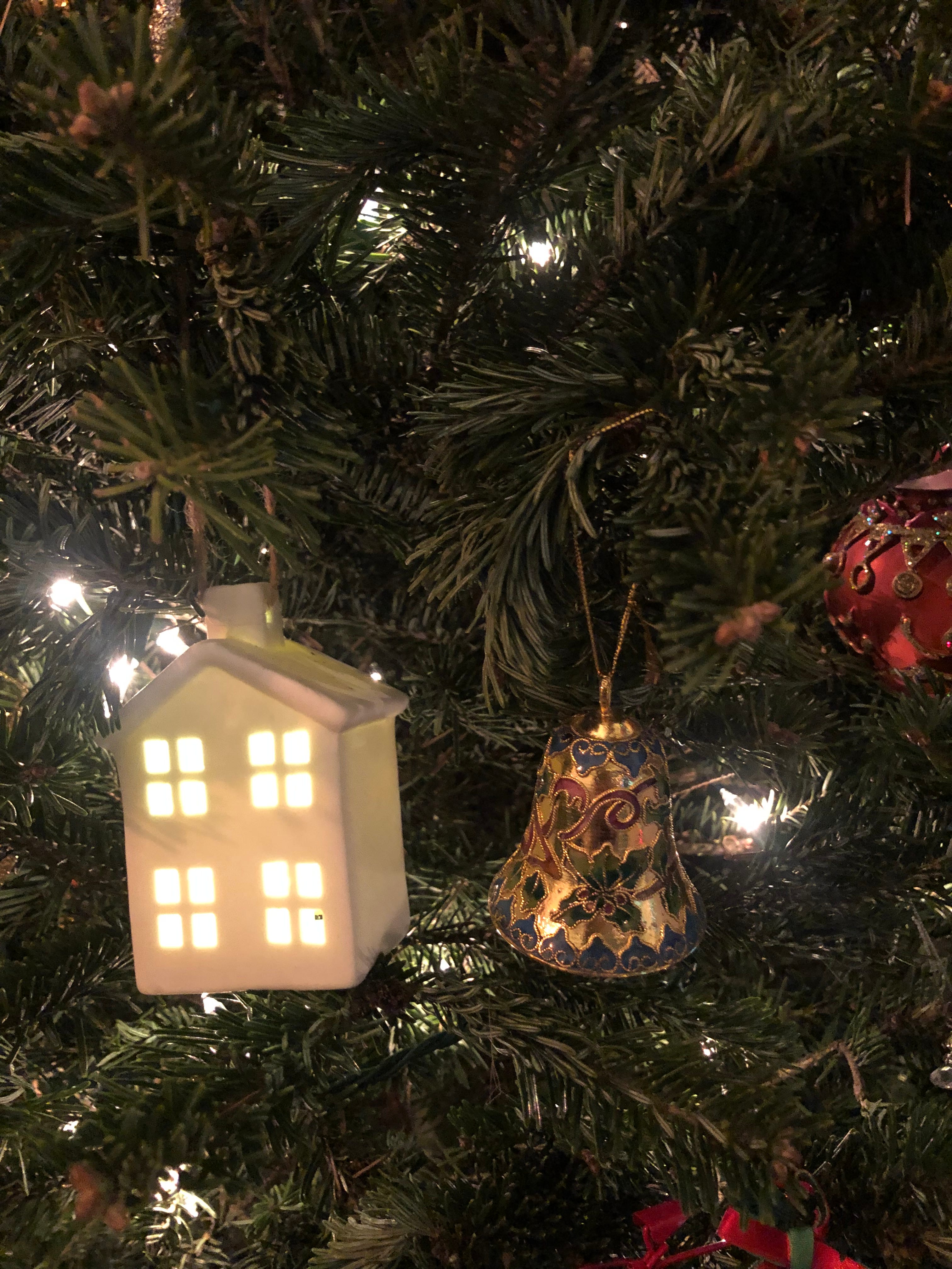 Golden bells hung on the ends of wide red ribbons the length of our staircase. The fireplace crackled with real logs. And on Christmas morning the tree was buried under a veritable mountain of presents.